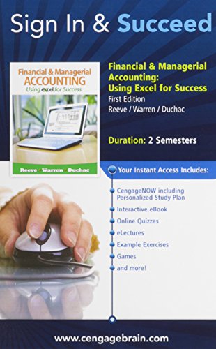 Read CengageNOW with eBook, 2 terms (12 months) Printed Access Card for Reeve/Warren/Duchac's Financial and Managerial Accounting Using Excel for Success by James Reeve, Carl S. Warren, Jonathan Duchac for online ebook